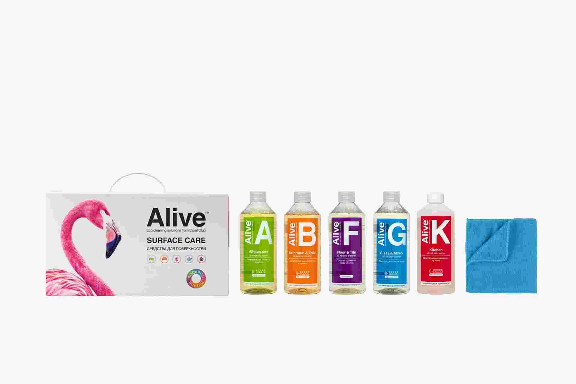 В комплект входят пять самых необходимых средств, которые сделают уборку приятным занятием, сберегут здоровье, сэкономят время и деньги. Средства универсальны, обладают антистатическим эффектом и не оставляют разводов, поэтому их можно не смывать. Из одного флакона концентрата получается пять флаконов средств, готовых к использованию.